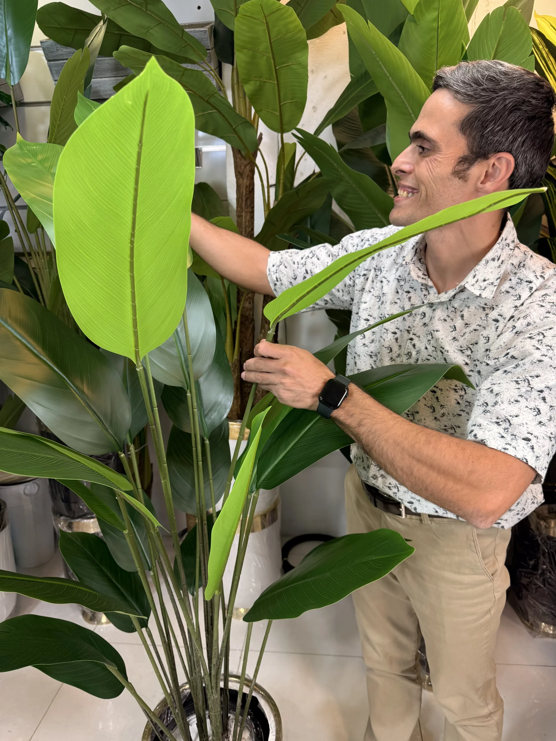 طراوت استوایی در قلب خانه شما درختچه مصنوعی پرنده بهشتی با ارتفاع ۱۷۰ سانتیمتری خود، فراتر از یک وسیله تزئینی، یک المان معماری برای دکوراسیون داخلی است. این گیاه با ۲۴ برگ پهن و خیرهکننده، چنان ظرافتی در ساخت دارد که تشخیص آن از نمونه طبیعی حتی از فاصله نزدیک دشوار است. رگبرگهای زرد ظریف و تضاد رنگ سبز تیره و روشن، روح تازگی را به گوشههای بیروح خانه یا محیط کار شما میبخشد. با تراکم عالی که قطری در حدود ۱۰۰ سانتیمتر را پوشش میدهد، این محصول انتخابی ایدهآل برای پر کردن فضاهای خالی در پذیرایی، لابیها و دفاتر اداری است.