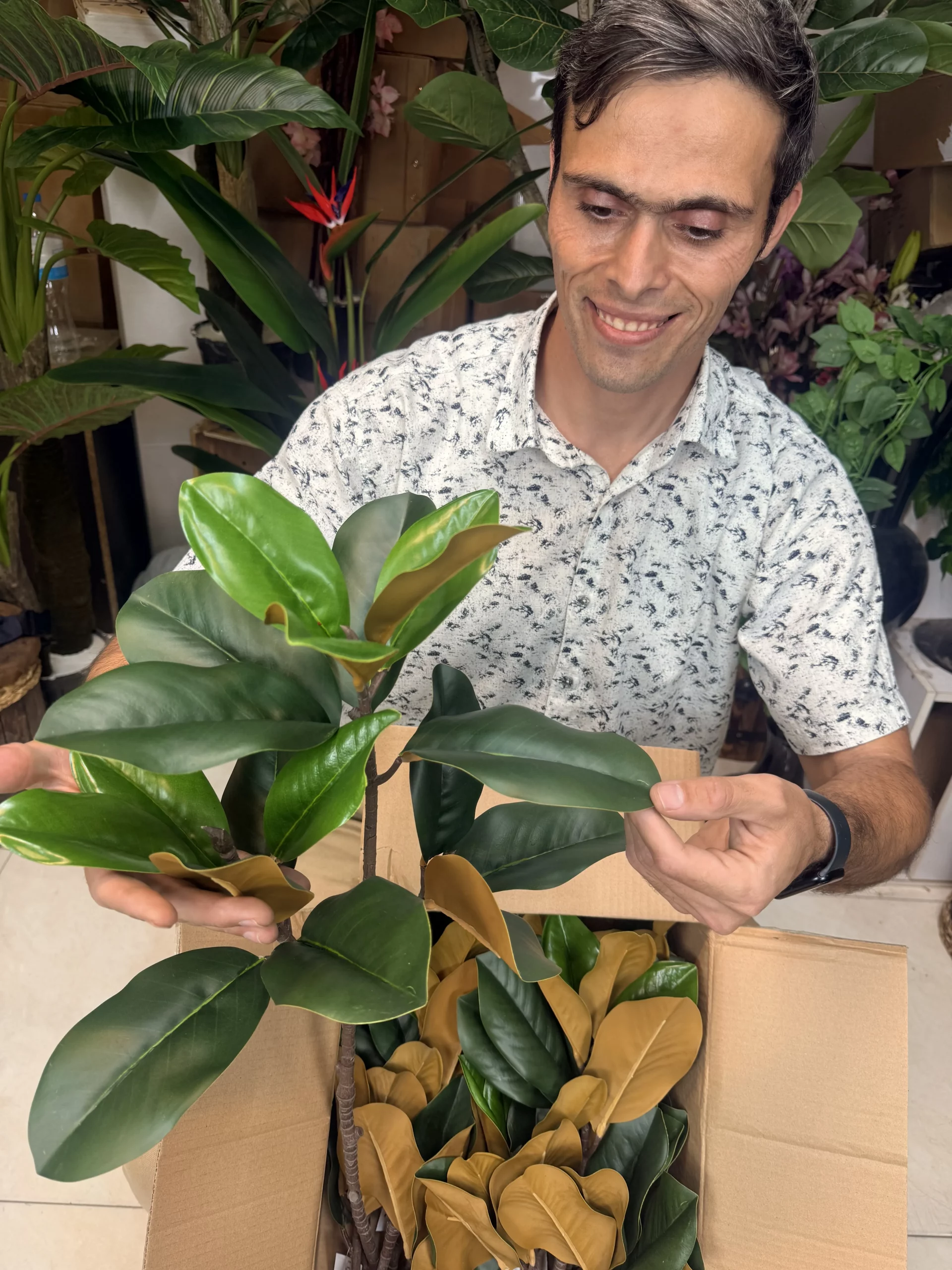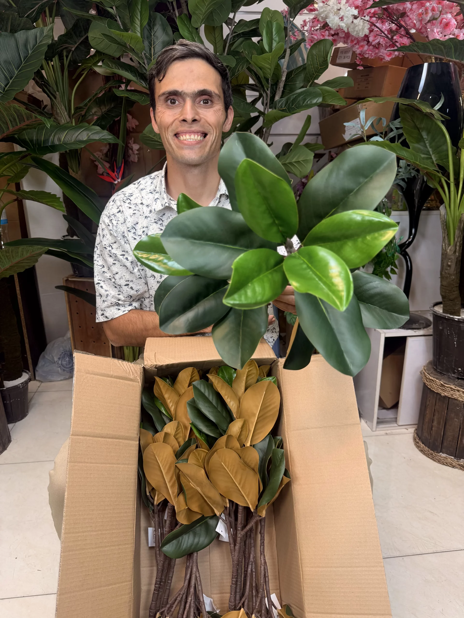 • جنس برگ‌ها: استفاده از بالاترین سطح کیفی مواد پلیمری با پوشش چرمی لمسی. این تکنولوژی باعث می‌شود که هنگام لمس، حس سردی یا پلاستیک خشک منتقل نشود و بافتی مشابه با برگ‌های طبیعی فیکوس داشته باشد.