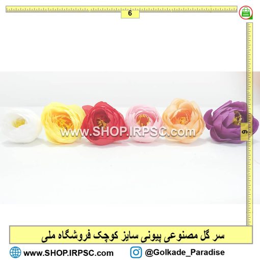 - سر گل مصنوعی پیونی کوچک عرضه شده دارای 6 رنگ بندی است