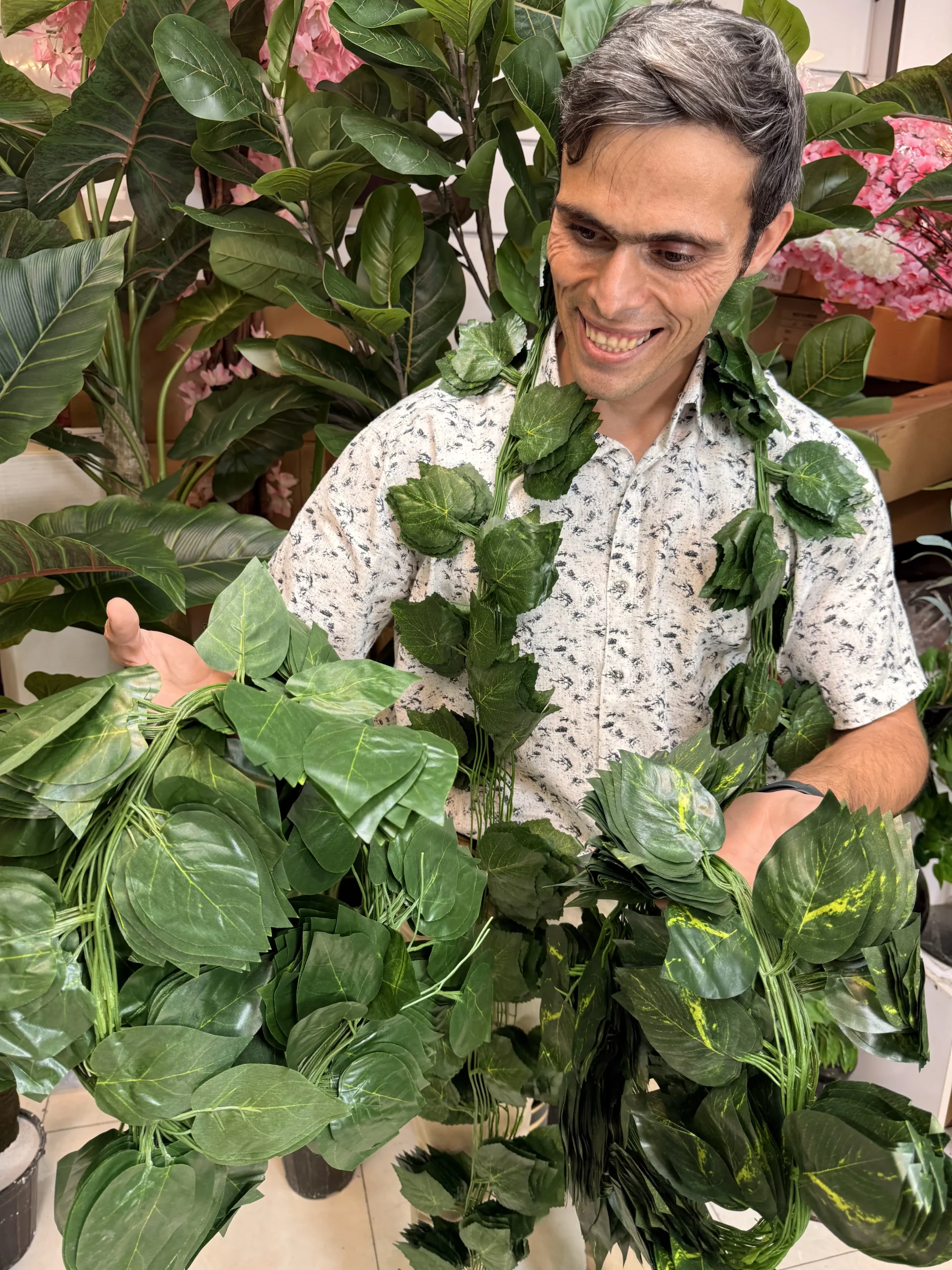 بررسی دقیق کیفیت و تراکم ریسه برگ مصنوعی ۲۲۰ سانتی توسط مصطفی قدیری مدیر فروشگاه ملی