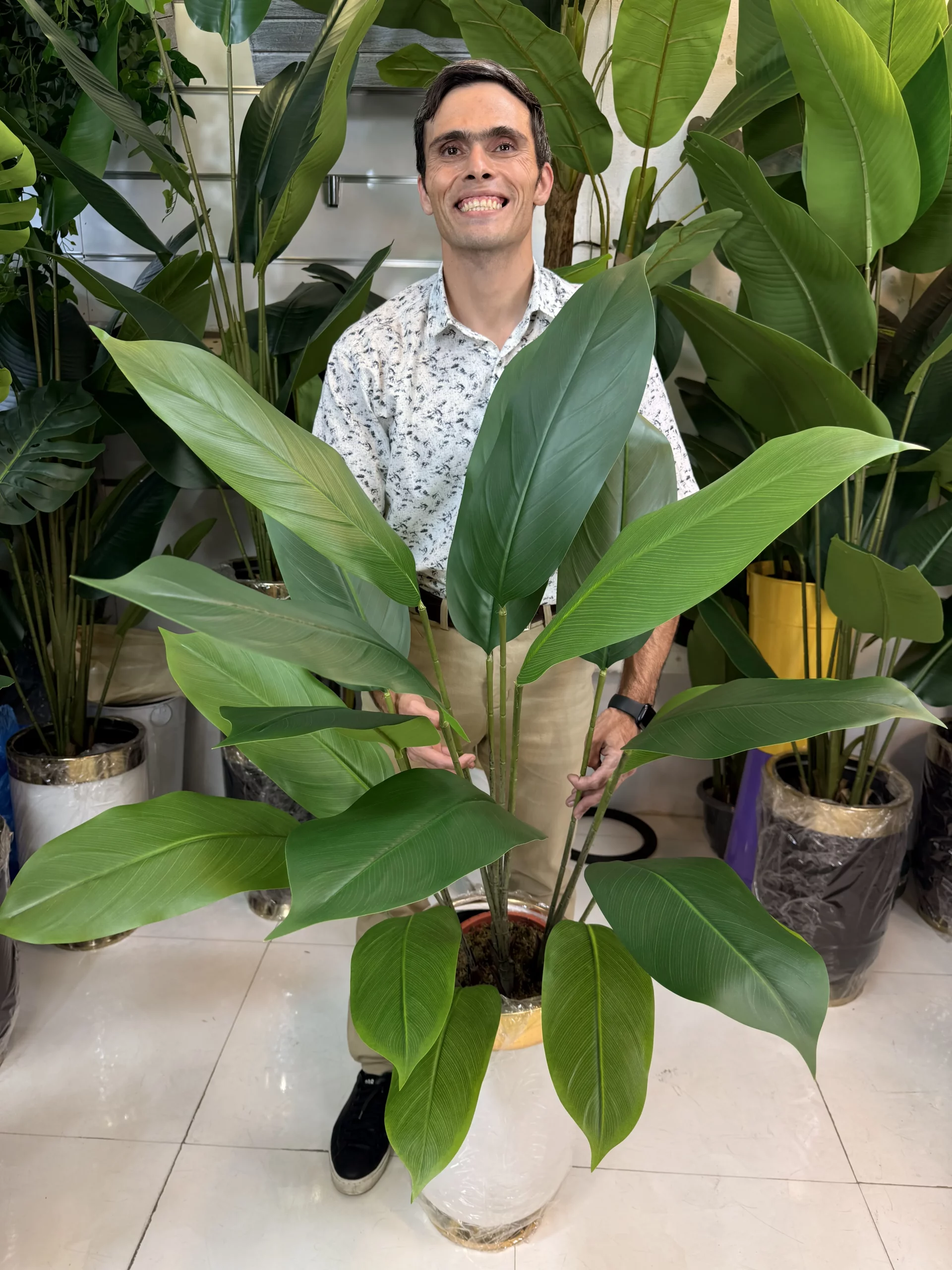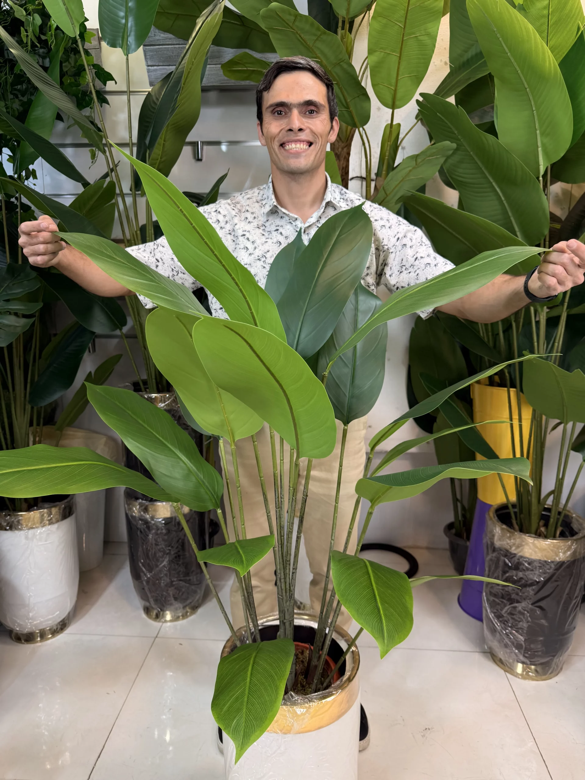 داشتن یک درختچه پرنده بهشتی (Strelitzia) در خانه یا محل کار، یعنی تزریق روح تازه و طراوت مناطق گرمسیری به فضای زندگی. این درختچه با برگهای پهن و سبز تیره و روشن، چنان ظرافتی در ساخت دارد که حتی در فواصل نزدیک، تشخیص آن از نمونه طبیعی دشوار است. جنس “لمسی” (Real Touch) برگها، حس لطافت گیاه زنده را زیر انگشتان شما تداعی میکند. سیم فلزی داخلی به شما اجازه میدهد تا هر برگ را به سبک دلخواه خود فرم دهید و تقارنی هنری در گوشهی پذیرایی یا لابی ایجاد کنید.