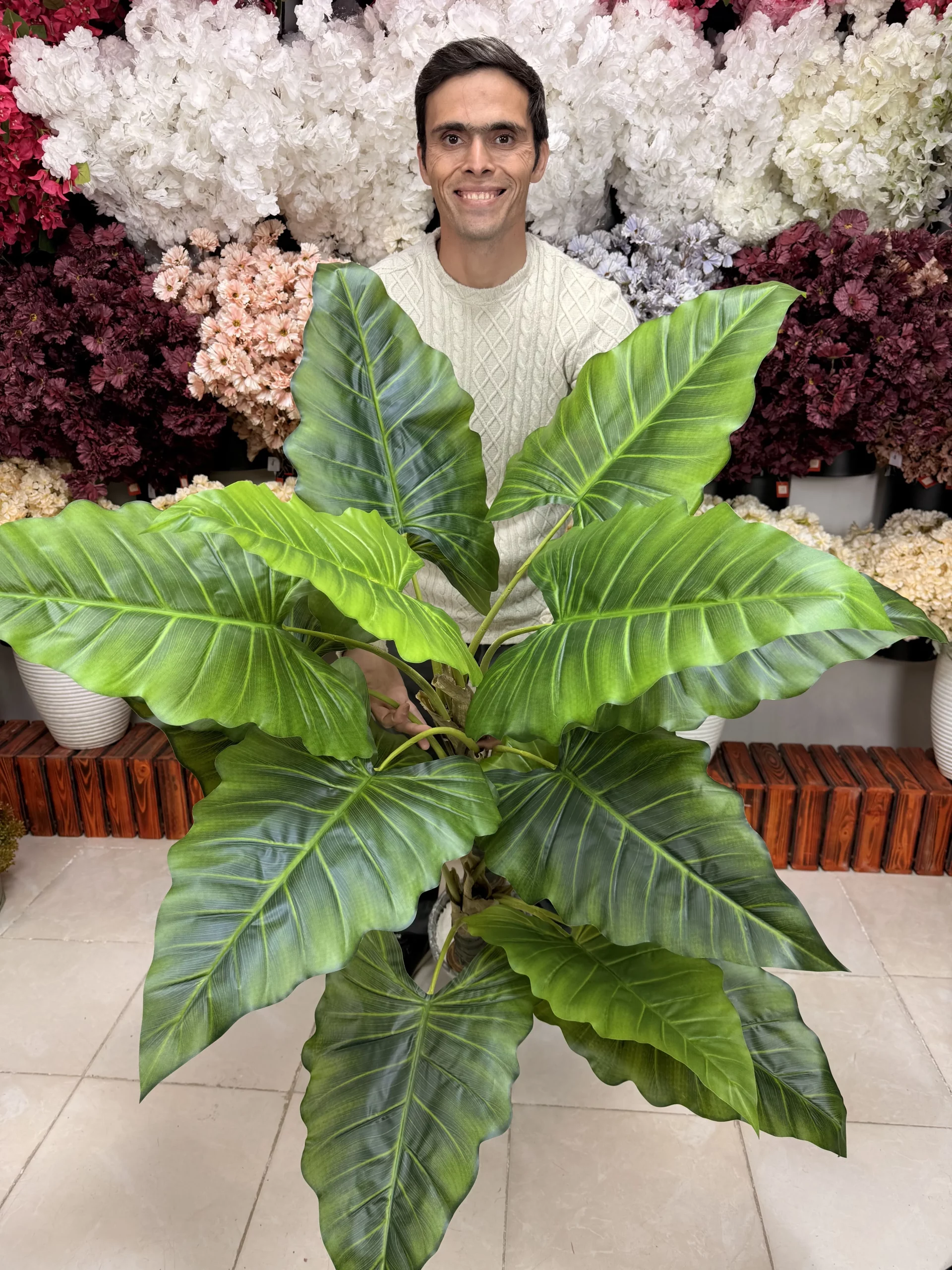 مهمترین ویژگی این درختچه، جنس برگهای “لمسی” (Real-Touch) آن است. ما با وسواس زیاد، از مرغوبترین مواد پلیمری برای ساخت این برگها استفاده کردهایم تا وقتی آنها را لمس میکنید، همان حس خنکی و بافت ظریف برگ طبیعی را تجربه کنید. رگههای دقیق، سایهروشنهای طبیعی در رنگ سبز و ترکیب هوشمندانه برگهای بزرگ و کوچک، همگی دست به دست هم دادهاند تا این درختچه از هر فاصلهای، درست شبیه به یک باباآدم واقعی به نظر برسد.